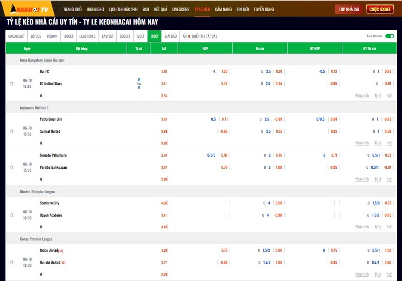Mọi loại ti le keo, từ kèo châu Á, châu Âu, tài xỉu, kèo rung cho tới phạt góc đều được cập nhật liên tục. Những trận hot, kèo biến động mạnh sẽ được ưu tiên hiển thị ngay đầu trang. Điều mình thích là Rakhoi đánh dấu rõ từng biến động: kèo tăng, giảm, đảo chiều đều có màu và ký hiệu riêng, nhìn vào là hiểu ngay.
